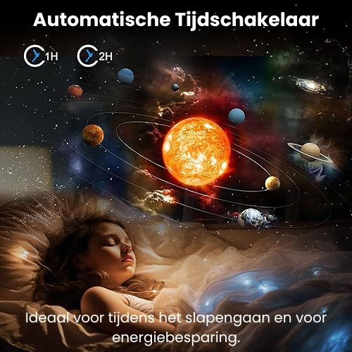 Stel eenvoudig 1 of 2 uur in. De projector schakelt automatisch uit, zodat je zorgeloos in slaap valt.